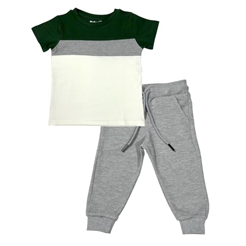 Baby Co. - طقم متعدد الالوان للاولاد (تيشيرت اخضر زيتوني متعدد الالوان وبنطلون رياضي رمادي)