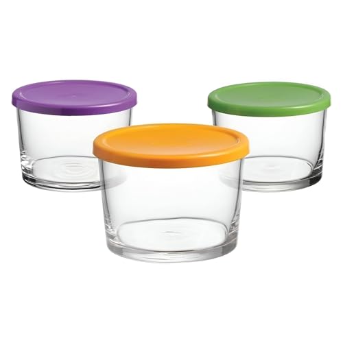 - تحتوي هذه المجموعة على ثلاث حاويات زجاجية عالية الجودة، تتميز كل منها بغطاء ملون محكم الغلق مصمم لتخزين وتقديم الحلويات، مما يضمن نضارة وعرض أنيق.