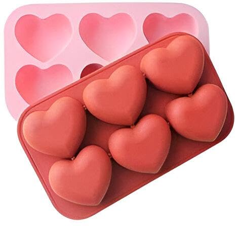 Generic - قالب قلب متعدد الألوان - قالب سيليكون بقطعة واحدة و6 تجاويف للشوكولاتة والكيك والصابون