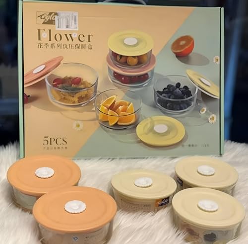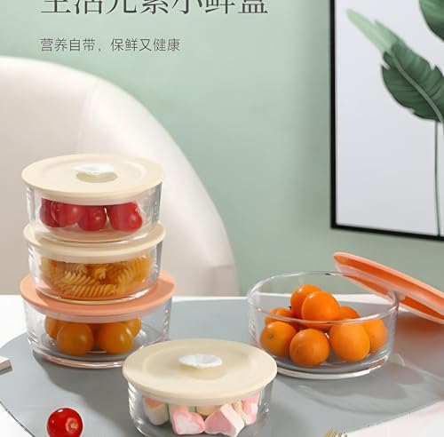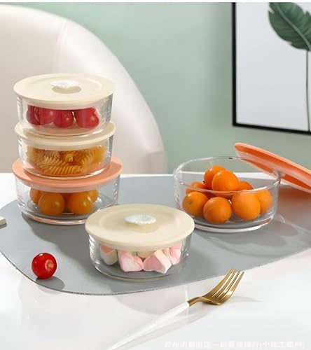 Generic - حاويات بغطاء متعددة الالوان - مجموعة من 5 اوعية زجاجية دائرية لتخزين الطعام مع اغطية محكمة الاغلاق، مصنوعة من زجاج البوروسيليكات المتين، امنة للاستخدام في الميكروويف وغسالة الصحون للاستخدام اليومي.