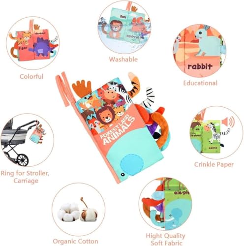 - 📚【تصميم جذاب】كتاب أطفال من القماش الناعم مع ذيول مزخرفة وألوان زاهية وأشكال لطيفة لجذب انتباه طفلك وتعريفه بعالم ملون.
