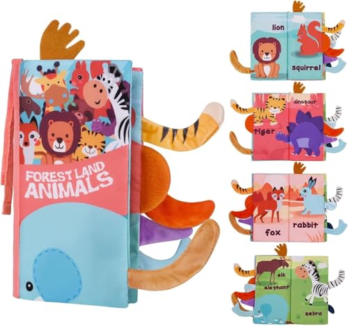 Generic - مجموعة كتب قماشية ناعمة للأطفال متعددة الألوان مع ذيل الحيوانات – لتنمية المهارات الحسية والتعرف على
