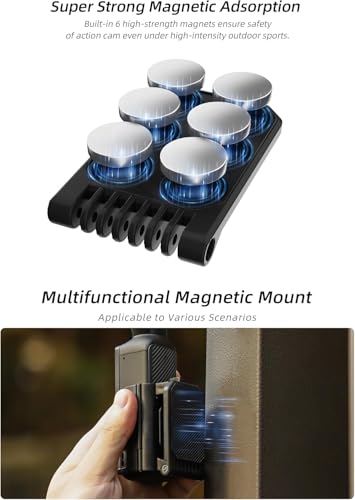 - [حامل كاميرا مغناطيسي فائق القوة]: مزود بقاعدة مغناطيسية مع 6 مغناطيسات قوية مدمجة. تحافظ القوة المغناطيسية القوية على جيبك 3 بإحكام في مكانه وتمنعه من السقوط. يمكن استخدامه على الأسطح المعدنية مثل السيارات والقضبان والثلاجات وما إلى ذلك.