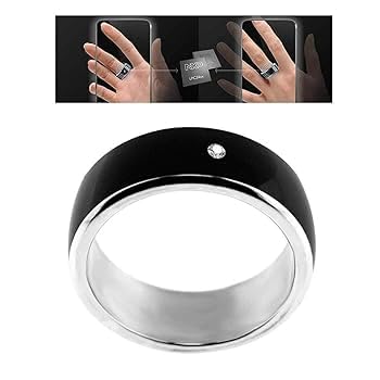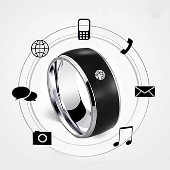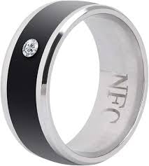 Generic - خاتم ذكي NFC متعدد الوظائف، اسود، مقاس 12، مع تقنية الاتصال قريب المدى للهواتف الذكية، مصنوع من المعدن مع كريستال