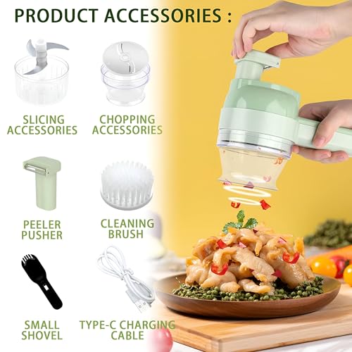 - قطاعة الخضروات الكهربائية المحمولة 4 في 1 تجعل تحضير الطعام سهلاً، وتقطيع المكونات في ثوانٍ. يمكنه التعامل مع كل شيء من الثوم إلى الفلفل دون الحاجة إلى التقطيع المسبق، مما يجعله مريحًا بشكل لا يصدق لإعداد الوجبات بسرعة.