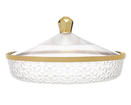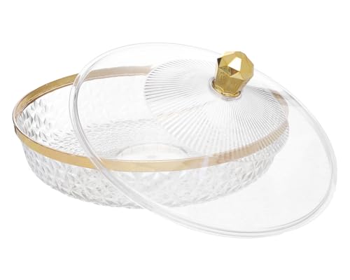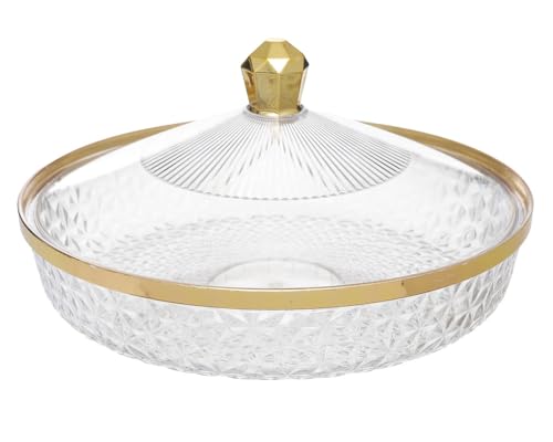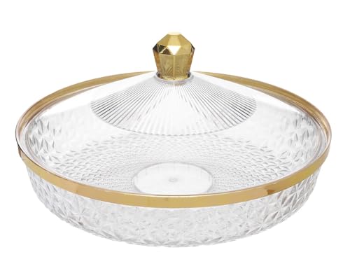 Generic - صينية اكريليك متعددة الوظائف للوجبات الخفيفة والفاكهة مع غطاء محكم الغلق شفاف وذهبي 2