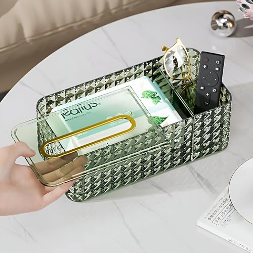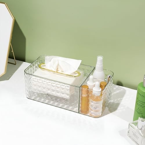 Generic - علبه مناديل ومنظم مكياج أكريليك متعدد الاستخدامات مثالي لتخزين أساسيات المكياج وأدوات العناية بشكل فعال في 3 حجرات منفصلة