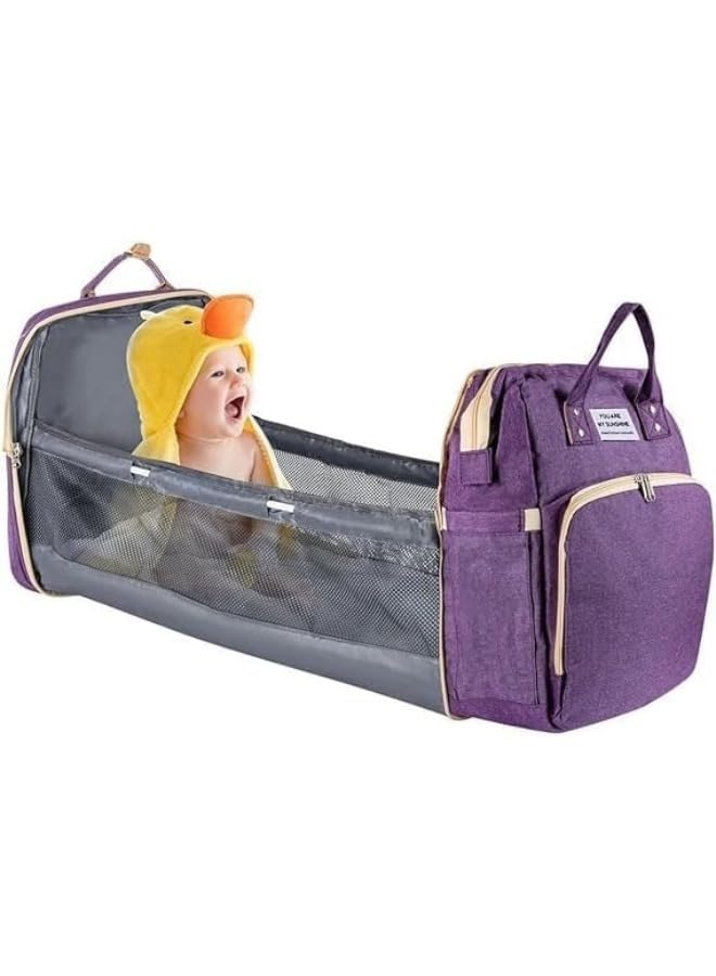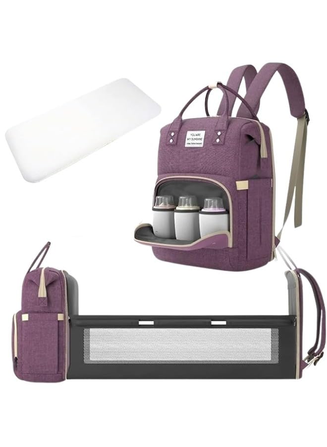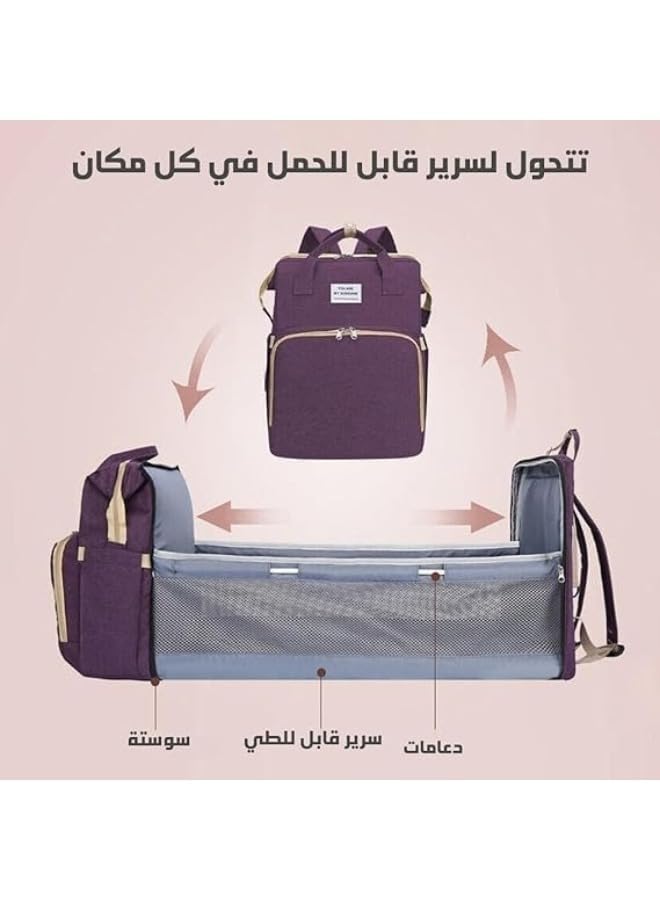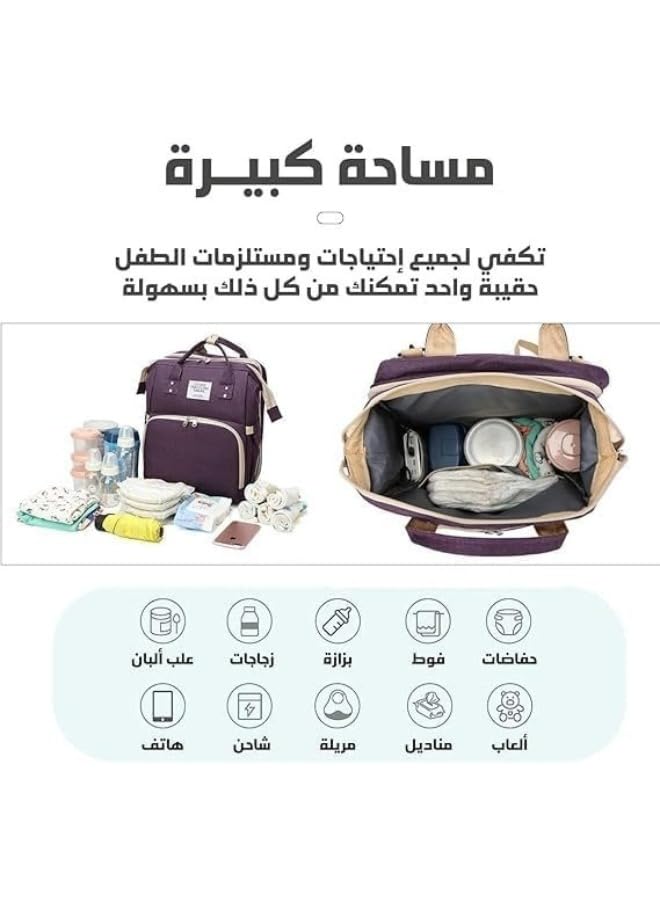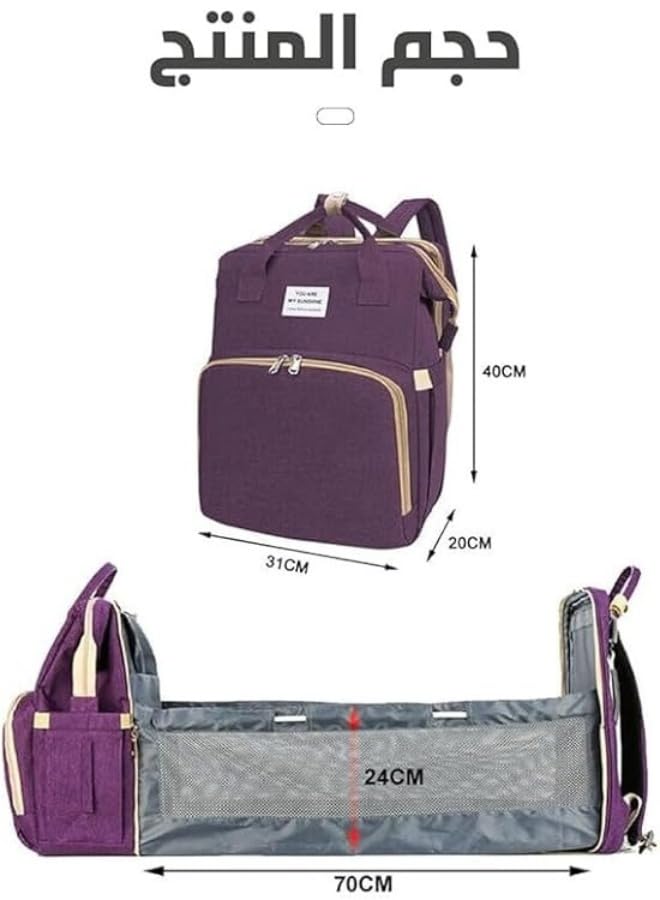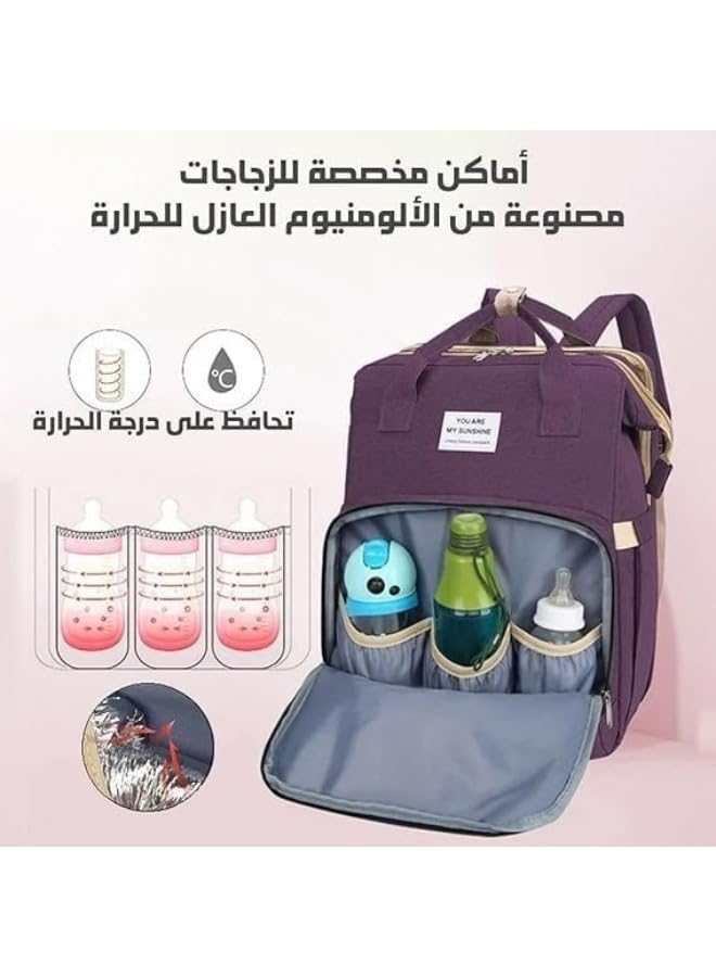 Generic - شنطة ظهر متعددة الوظائف لحفاضات الاطفال مع سرير محمول وجيوب معزولة للزجاجات