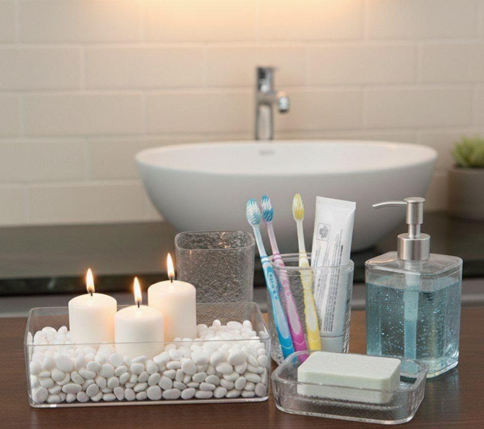 - تصميم عملي يستغل المساحات الصغيرة داخل الحمام لتخزين أكبر عدد ممكن من المستلزمات اليومية بكفاءة.