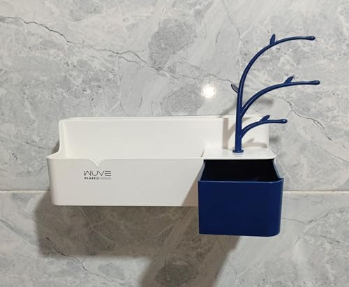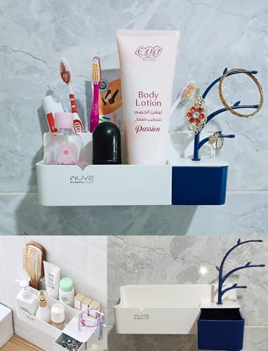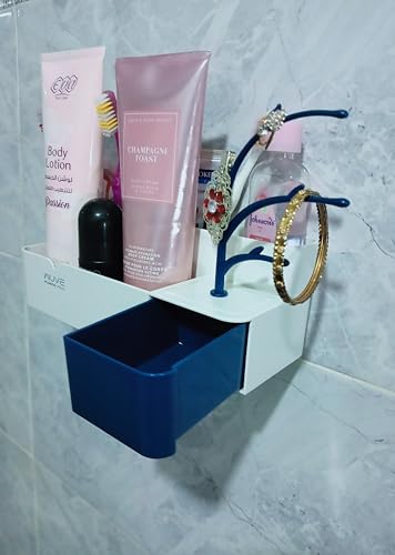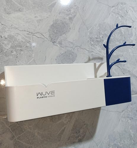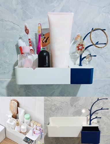 Generic - منظم حائط متعدد الوظائف للحمام، حامل فرش الأسنان مع درج تخزين، تصميم عصري باللون الأبيض والأزرق، حامل مجوهرات وإكسسوارات