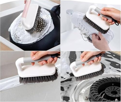 Generic - فرشاة تنظيف متعددة الاستخدامات، مقبض مريح رمادي، شعيرات سوداء قوية، أداة تنظيف منزلية