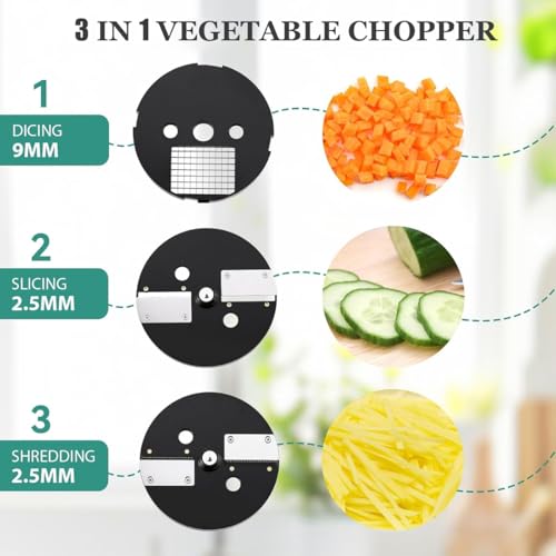 LWCHUANG - قطاعة خضروات تجارية متعددة الوظائف، قطاعة فواكه، محضر طعام، بطاطس اوتوماتيكية، بصل، تقطيع مع 3 شفرات من الستانلس ستيل