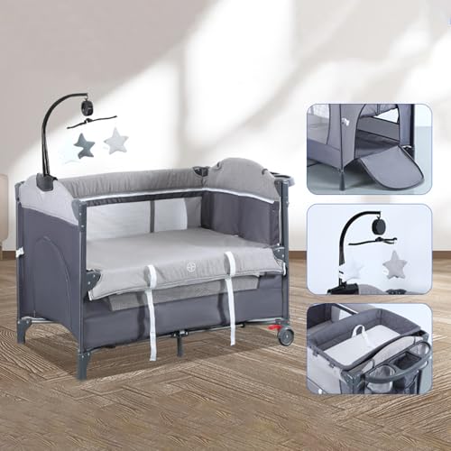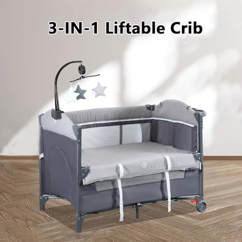 INGUNAR - سرير أطفال متعدد الوظائف، سرير أطفال للسفر 3 في 1، سرير محمول للأطفال، سرير نوم بجانب السرير مع طاولة لتغيير الحفاضات، ساحة لعب للأطفال بارتفاع قابل للتعديل، سهل التركيب