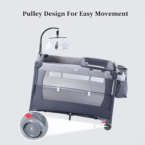 - 【تصميم البكرة】تصميم البكرة لسرير الأطفال القابل للطي والرفع جميل وعملي، مما يجعله سهل الحركة وبدون مجهود.