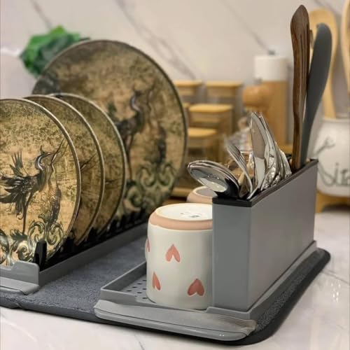 Generic - مطبقيّة متعددة الاستخدامات لتجفيف الأطباق، الكوبايات، المجات والمعالق – مع فوطة امتصاص ماء قابلة للطي، خامة عالية الجودة وسهلة التنقل