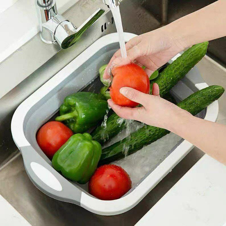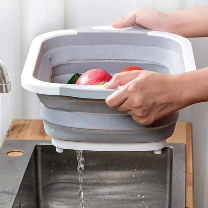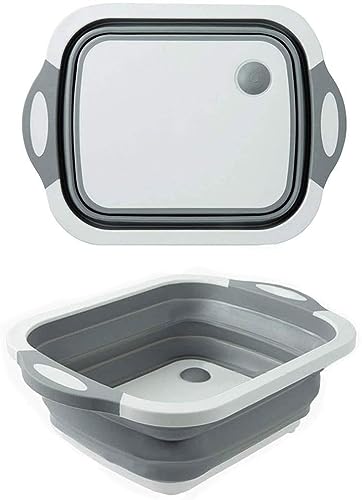 Generic - لوح تقطيع قابل للطي متعدد الوظائف 3 في 1 أداة مطبخ متينة وغير زلق، يعمل كحوض للخضروات وخزان لغسيل الأطباق والفواكه والخضروات وسلة تخزين