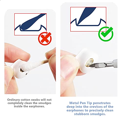 - تنظيف فعال: قلم واحد ينظف مجموعة سماعات الأذن بالكامل، من الثقوب الصغيرة لسماعات الأذن إلى علبة الشحن، ينظف سماعات الأذن بزوايا 360 درجة.