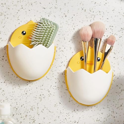 Generic - منظم منزلي متعدد الوظائف - تخزين بلاستيكي على شكل كتكوت لمستلزمات الحمام ومستلزمات المطبخ وادوات الشعر او الاكسسوارات، حامل متين كبير (عبوتان)