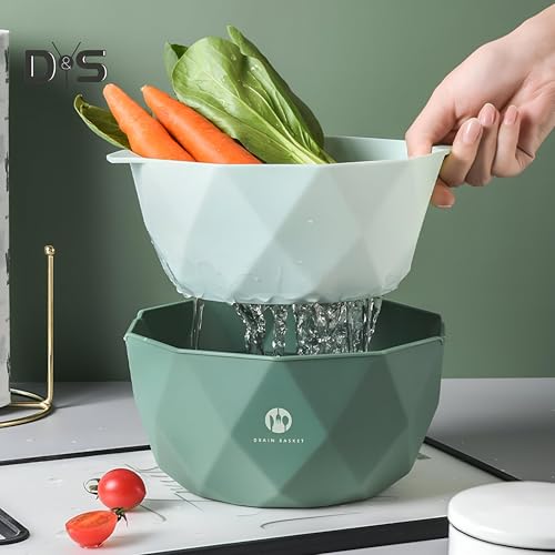 Generic - مصفاة مطبخ متعددة الوظائف، وعاء مطبخ، مصفاة، وعاء تصريف، سلة تصريف للفواكه، سلة تصريف الخضروات، مصافي الخضروات وسلة غسيل الخضروات البلاستيكية، سلة المطبخ