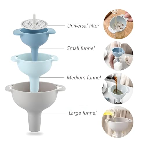 Generic - قمع مطبخ متعدد الاستخدامات مصمم لملء الزجاجات بكفاءة، مجموعة قمع زيت مكونة من 3 قطع مع مصفاة قابلة للإزالة، قمع طعام مثالي لصب السوائل والمكونات الجافة والمواد المسحوقة