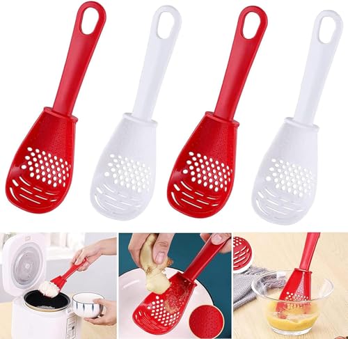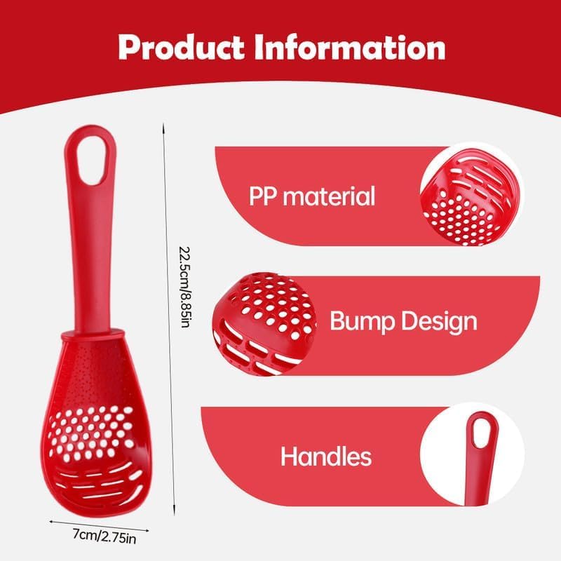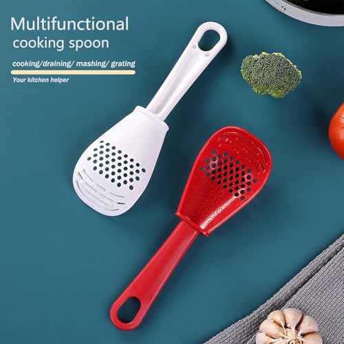 AREXOL - ملعقة مطبخ متعددة الوظائف مع هراسة ومبشرة ومصفاة من البلاستيك القوي المتين للبيض والخضروات والفواكه، اداة مطبخ
