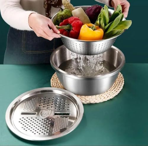 Generic - مصفاة مطبخ متعددة الوظائف 3 x 1 مبشرة ومصفاة ووعاء من الستانلس ستيل