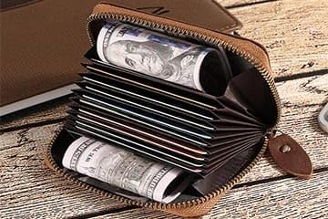 - تصميم متعدد الوظائف: محفظة بطاقات جلدية مدمجة مع سحاب آمن ومشبك إضافي لتخزين إضافي للبطاقات والنقود