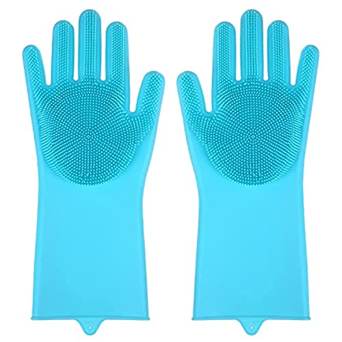 Generic - قفازات تنظيف سيليكون سحرية، متعددة الوظائف وعالية الجودة للمطبخ والحمام وغسيل الأطباق والعناية بالحيوانات الأليفة وغسيل السيارات (1 زوج متعدد الألوان) (لون أزرق)
