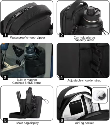 Generic - حقيبة زجاجة مغناطيسية متعددة الاستخدامات للجيم، مقاومة للماء مع مغناطيس قوي، حامل ملحقات رياضية للزجاجات والهاتف والمفاتيح، حقيبة كتف للسفر والأماكن الخارجية، أسود