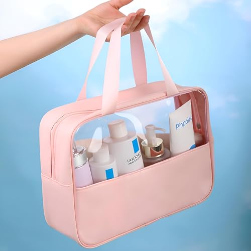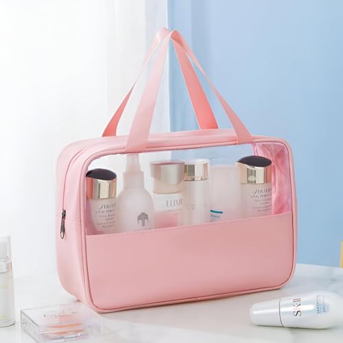 Generic - شنطة مكياج متعددة الوظائف - شنطة بلاستيكية صغيرة من الجلد الشفاف لمستحضرات التجميل وادوات التجميل ومستلزمات السفر، متوفرة بالوان متنوعة، تجمع بين العملية والأناقة