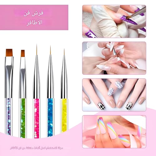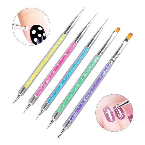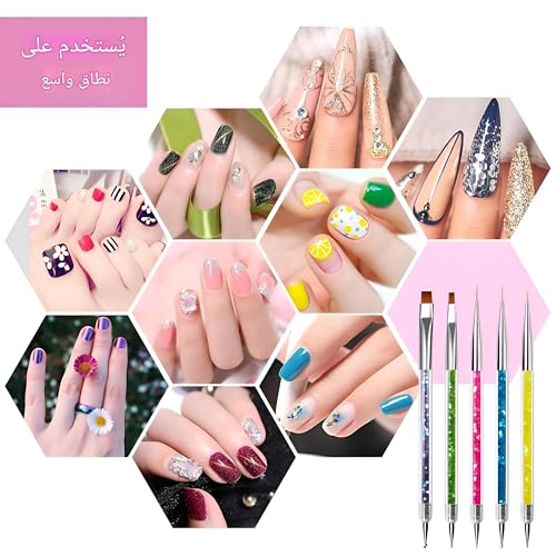 - مجموعة من 5 فرش مزدوجة الأطراف لفن الأظافر تجمع بين الشعيرات وأدوات التنقيط لتزيين متعدد الاستخدامات، مثالية لرسم الخطوط والزهور والأنماط مع تحكم دقيق وسلس.