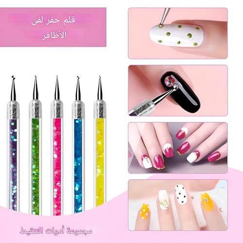 Generic - مجموعة تصميم أظافر متعدد الاستخدامات مزود برؤوس فرش دقيقة وأقلام نقطية لإنشاء نقوش فنية وزخارف دقيقة مع تأثير صالون احترافي