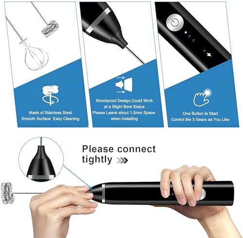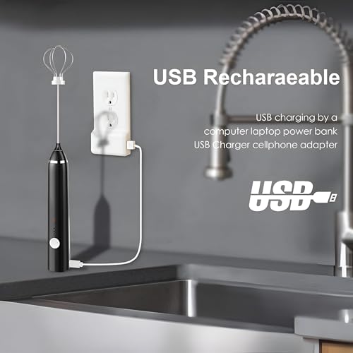 Generic - مُخفّق محمول متعدد الوظائف - مُخفّف كهربائي قابل لإعادة الشحن بمُخففين مزدوجين للماتشا واللاتيه والشوكولاتة الساخنة، مع 16 قوالب فنية للرغوة