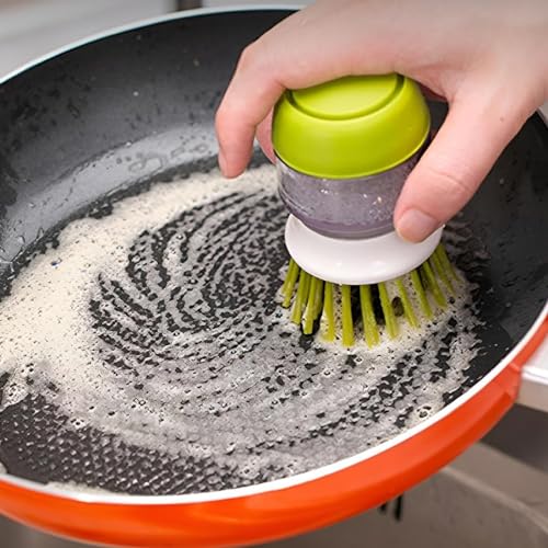 - 🍽️【منظف يدوي مزدوج بمضخة صابون】تتكون الفرشاة الدائرية من ألياف نايلون تتحمل الحرارة تمتاز بنعومتها لضمان عدم خدش طبقة الحماية في المقالي.
