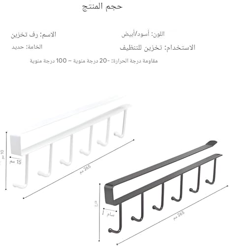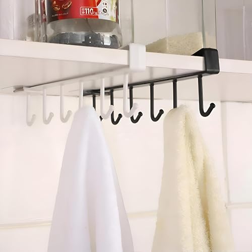 Generic - رف متعدد الاستخدامات، خطافات متعددة الوظائف بلون أسود وأبيض لأكواب القهوة والمجات مناسب لدواليب المطبخ وتنظيم الأدوات المتنوعة (قطعة واحدة من الألوان المعروضة)