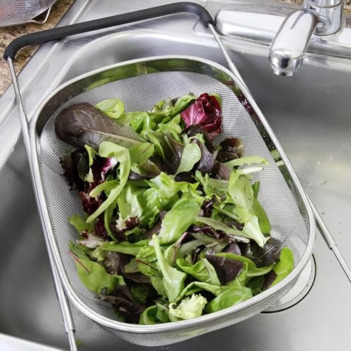 Generic - مصفاة بيضاوية متعددة الوظائف قابلة للعكس مع هيكل من الفولاذ المقاوم للصدأ ورباطات مرنة قابلة للتمدد - تستخدم لغسل الفواكه والخضروات