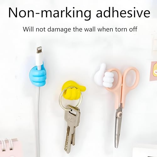 - خطافات جدارية إبهامية من السيليكون ذاتية اللصق، مصممة على شكل إبهام مرح حتى تنشر الإبداع والبهجة في مكان استخدامها. هذه الخطافات الرائعة ليست جذابة بصريًا فحسب، بل تخدم غرضًا عمليًا من خلال توفير حل مناسب لتعليق كابلات البيانات وسماعات الأذن والمفاتيح وحتى فُرش الأسنان. بفضل تصميمها الممتع الذي يجلب الابتسامة، فهي مثالية لإضافة لمسة إيجابية إلى أي مساحة مع تعزيز التنظيم لديك.