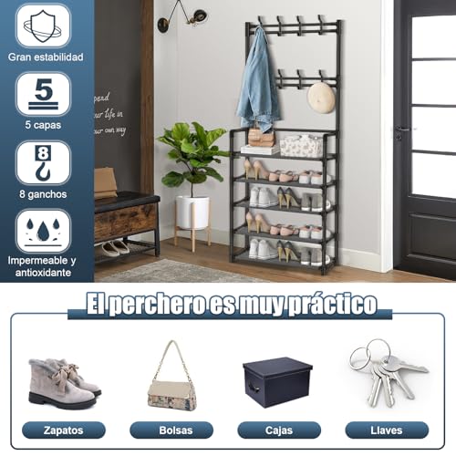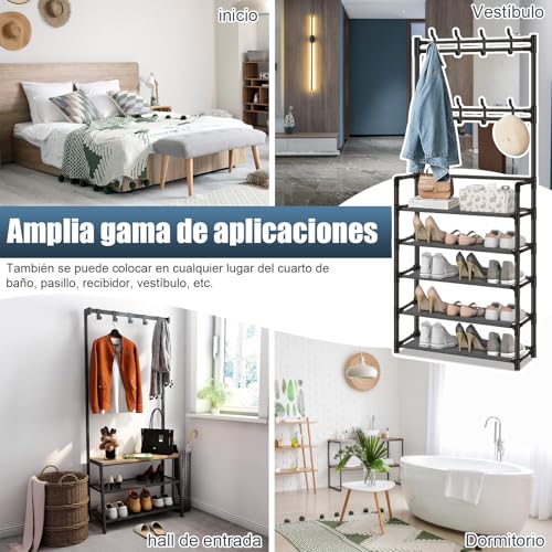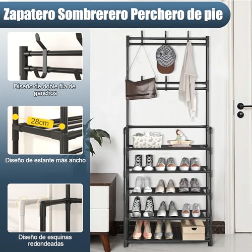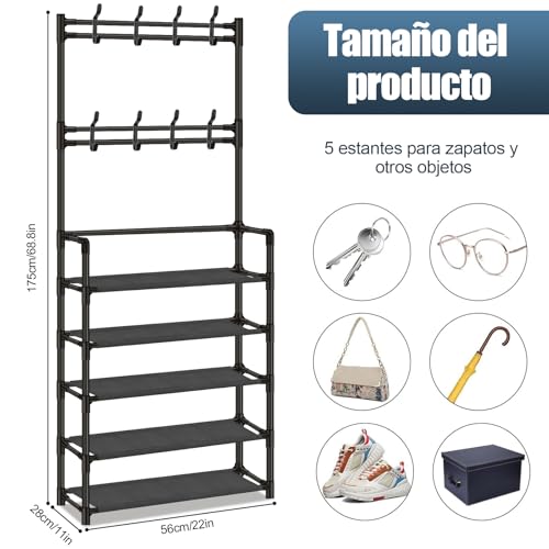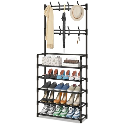 YIMIDM - رف أحذية متعدد الوظائف بمساحة كبيرة، رف 2 في 1 منظم أحذية ورف معاطف، مصمم بـ 4 مستويات للمدخل والرواق وخزانة الملابس (أسود)