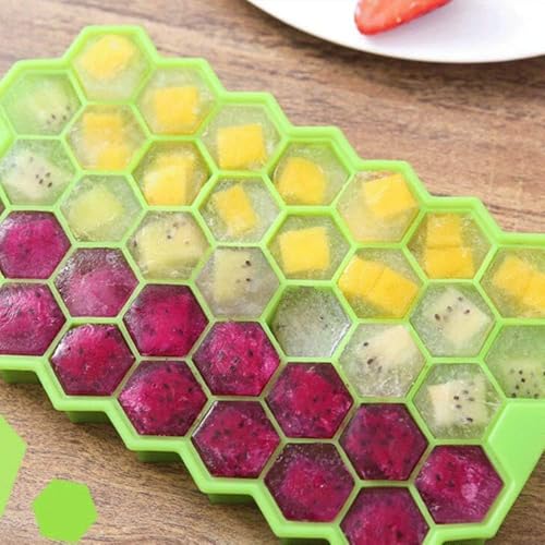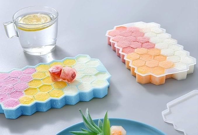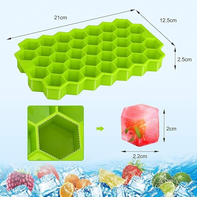 - تصميم خلية النحل السداسي: قالب ثلج سيليكون بتصميم عصري يحتوي على 37 فتحة سداسية الشكل لصنع مكعبات ثلج أنيقة بحجم 2.2 سم × 2 سم