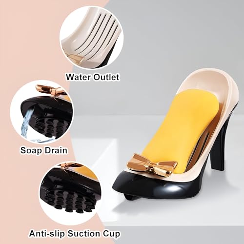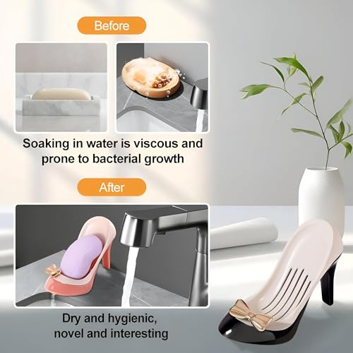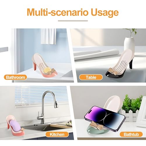 - تصميم متعدد الأغراض، حامل الصابون هذا على شكل كعب عالي متعدد الاستخدامات بما يكفي لتخزين ليس فقط الصابون ولكن أيضًا الإسفنجات والفرش والمجوهرات والقلائد والمفاتيح مما يعزز التنظيم في المطبخ أو الحمام.
