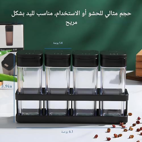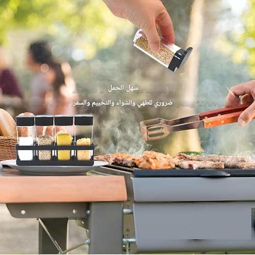 - تم تصميم حامل التوابل ليوفر الراحة وسهولة النقل، ويشمل مجموعة مدمجة من 4 عبوات توابل مع صينية. يبلغ مقاس كل حاوية 5 سم × 3 سم × 9.5 سم، مما يجعلها مثالية للأنشطة المختلفة مثل الشواء والتخييم والمشي لمسافات طويلة والسفر. يضمن هذا التصميم المدمج أنه يمكنك حمل توابلك المفضلة بسهولة أينما ذهبت، مما يوفر مساحة ثمينة في مطبخك أو أثناء التنقل.