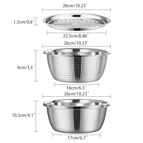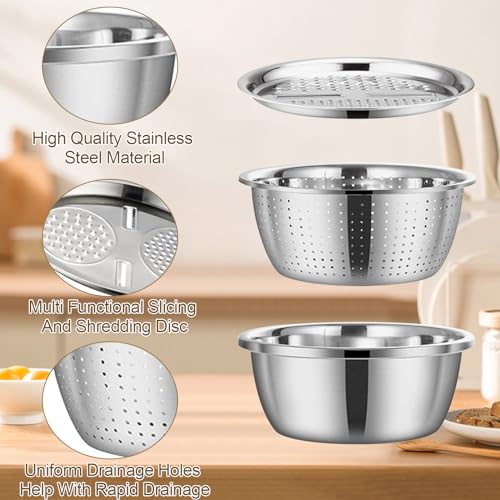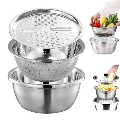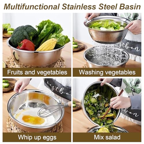 - 【طبق غسيل ألماني متعدد الوظائف من الفولاذ المقاوم للصدأ】: تتميز مجموعة المصفاة بتصميم متعدد الوظائف 4 في 1 يجمع بين قطاعة الخضروات ومبشرة الطعام وبولة صنع السلطة ومصفاة لزيادة كفاءة الطهي من خلال تبسيط مهام إعداد الطعام.