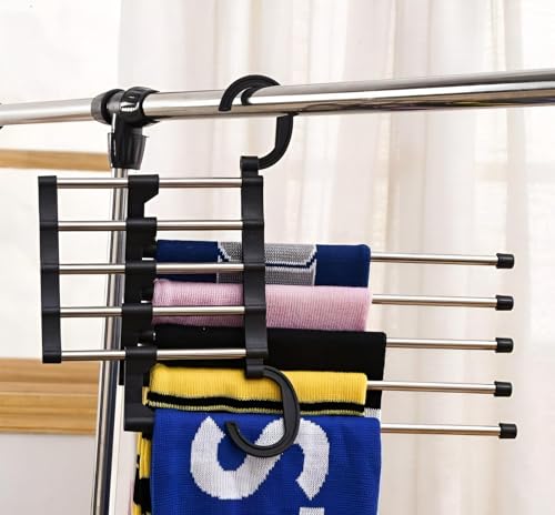 Generic - حامل متعدد الوظائف - رف مبتكر قابل للتعديل للسراويل وربطات العنق والأوشحة والأحزمة ، مثالي لتنظيم ملابسك بخمسة أعمدة متينة