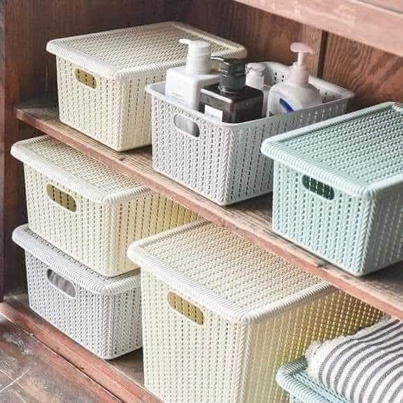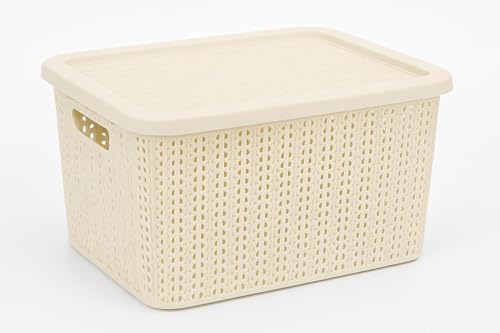 - تصميم منسوج من الراتان: يتميز صندوق التخزين الأنيق باللون الكريمي بنمط نسيج الراتان المزخرف الذي يضيف لمسة أنيقة إلى أي غرفة مع الحفاظ على الأشياء منظمة بشكل أنيق