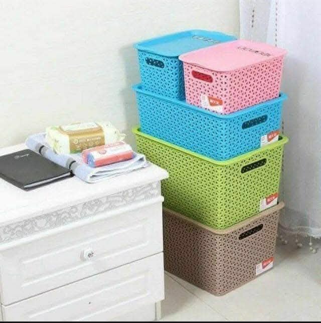 - مقابض مدمجة: توفر المقابض الجانبية المدمجة قبضة مريحة للحمل والنقل بسهولة بين الغرف أو مناطق التخزين