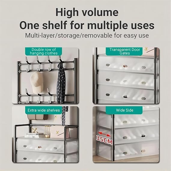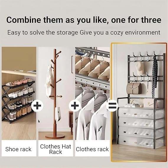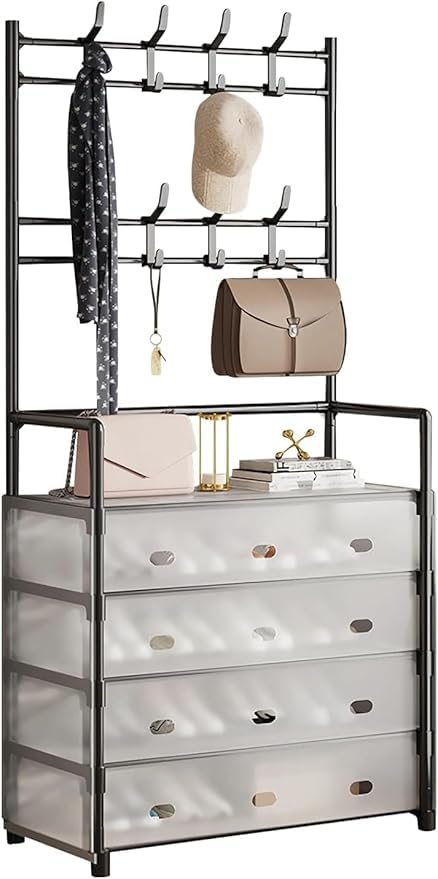 Generic - منظم تخزين متعدد الوظائف مع 4 أدراج، رف تعليق ورف أحذية، تصميم إطار معدني، حل خزانة للمدخل موفر للمساحة