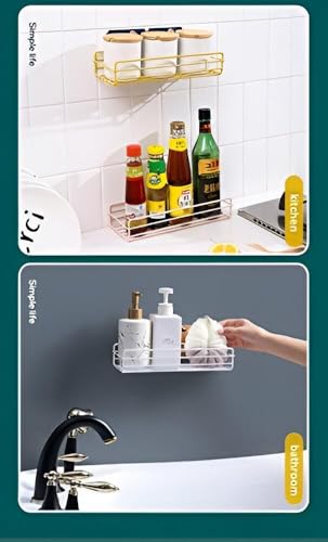 - تصميم 【بسيط وعملي درابزين】 عالي، منظم دش كبير السعة، تنظيم مستلزمات الحمام مثل الشامبو، جل الاستحمام، منتجات العناية بالبشرة، شفرات الحلاقة. حافظ على حمامك مرتبًا وجميلًا.