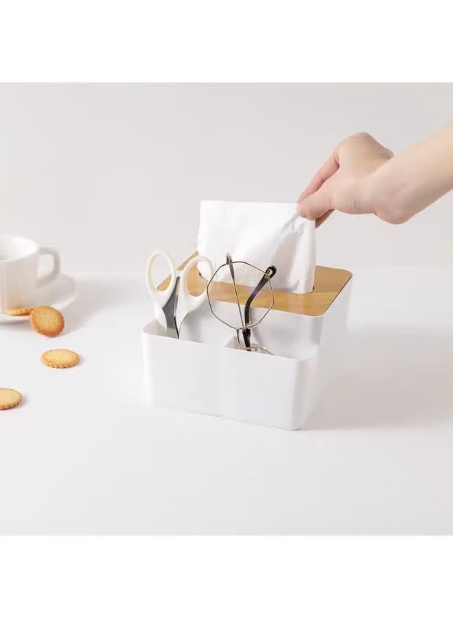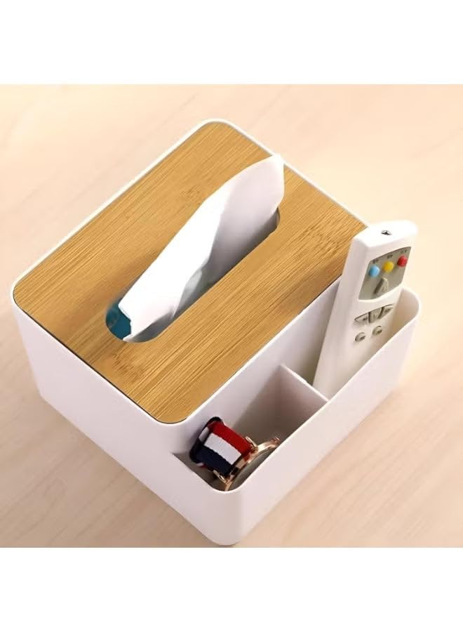 generic - حامل علبة مناديل متعدد الوظائف مع غطاء منظم خشبي | حل تخزين انيق لسطح المكتب | حاوية بتصميم عصري مع قسمين للاقلام واجهزة التحكم عن بعد والاكسسوارات الصغيرة