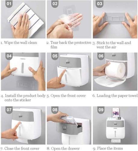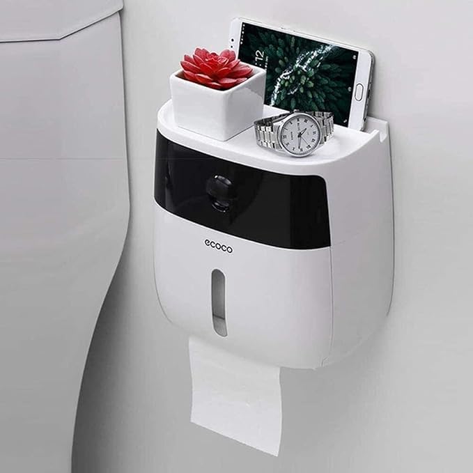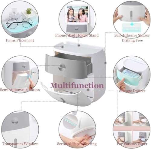 Generic - حامل ورق التواليت متعدد الوظائف، صندوق مناديل مقاوم للماء مع درج تخزين، حامل هاتف ذاتي اللصق مثبت على الحائط للحمام والمطبخ وغرفة النوم