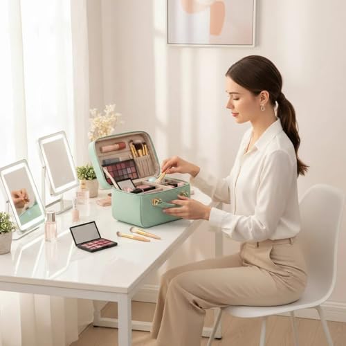 - شنطة أدوات الزينة ومستحضرات التجميل - شنطة مستحضرات تجميل مثالية للسفر والعطلات ورحلات العمل والجيم والتخييم والحمام والأنشطة الخارجية